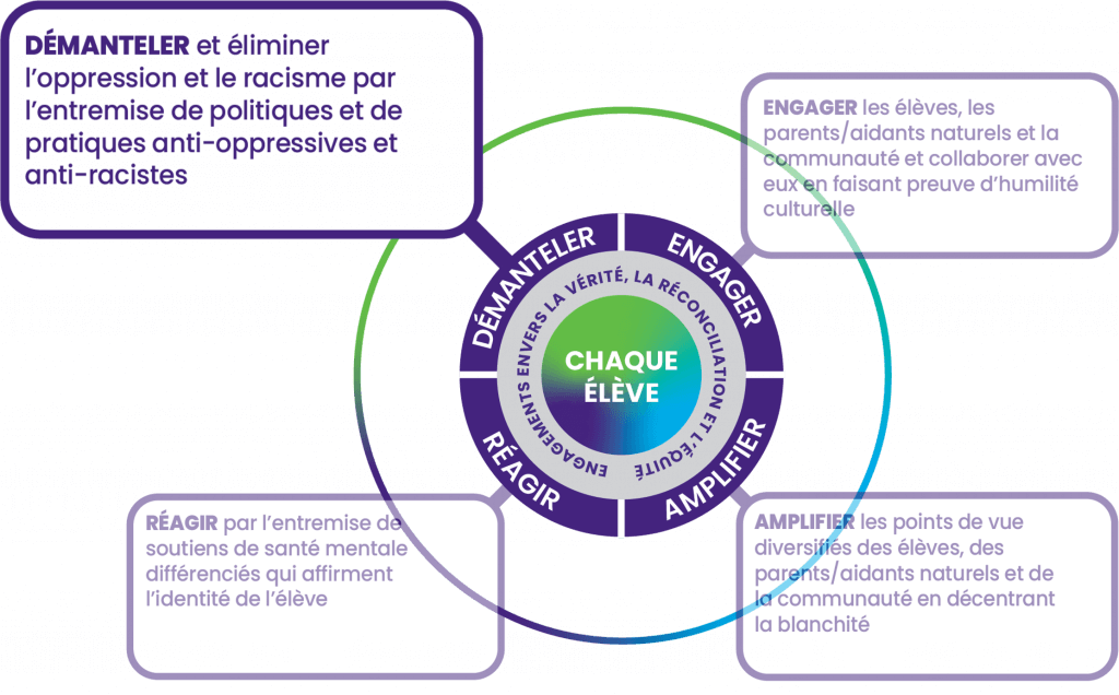 • reconnaissons et travaillons à démanteler les structures et les processus qui privilégient certains élèves et en marginalisent d’autres, afin d’ouvrir la voie à un système de soutien en matière de santé mentale qui soit véritablement au service de chaque élève.
