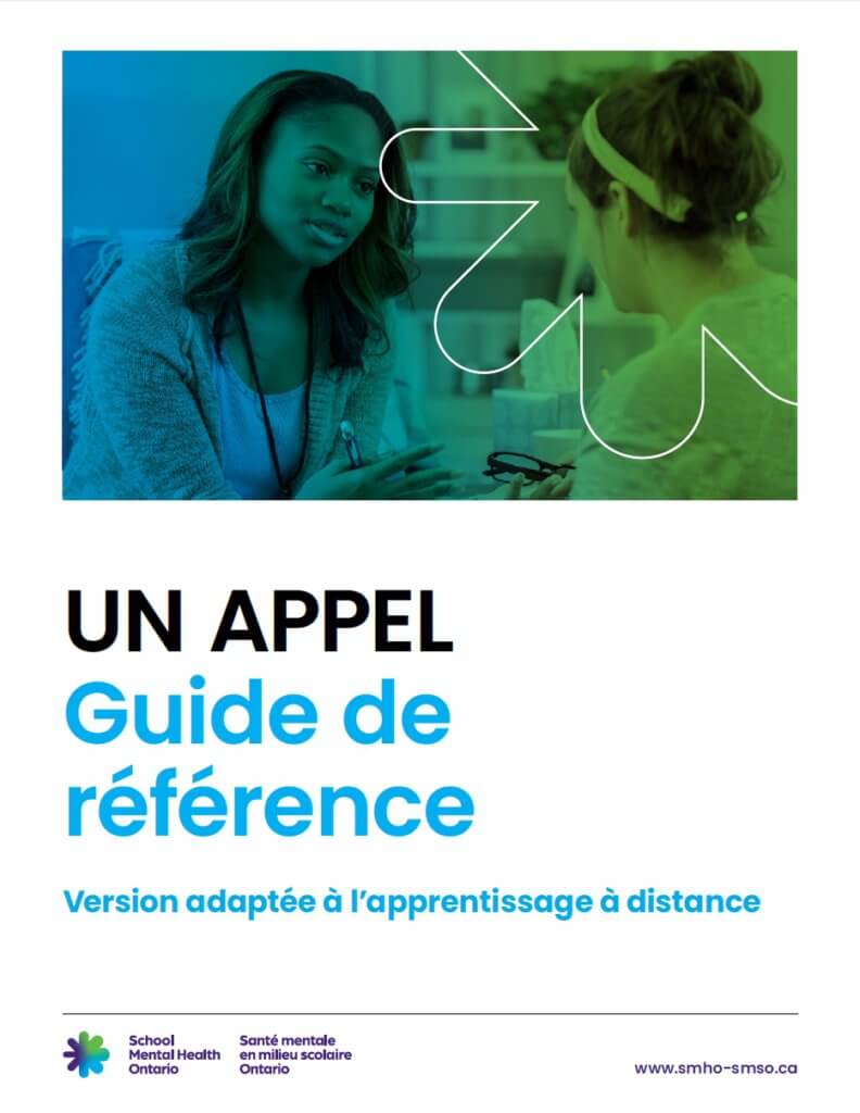 UN APPEL n’est pas une liste de contrôle, mais plutôt un outil qui offre des conseils au personnel des écoles sur la façon de détecter les problèmes de santé mentale éventuels chez les élèves et sur la manière de réagir. Ces conseils doivent toujours être envisagés dans le cadre des politiques, protocoles et voies d’accès en matière de santé mentale établis par le conseil scolaire concerné.